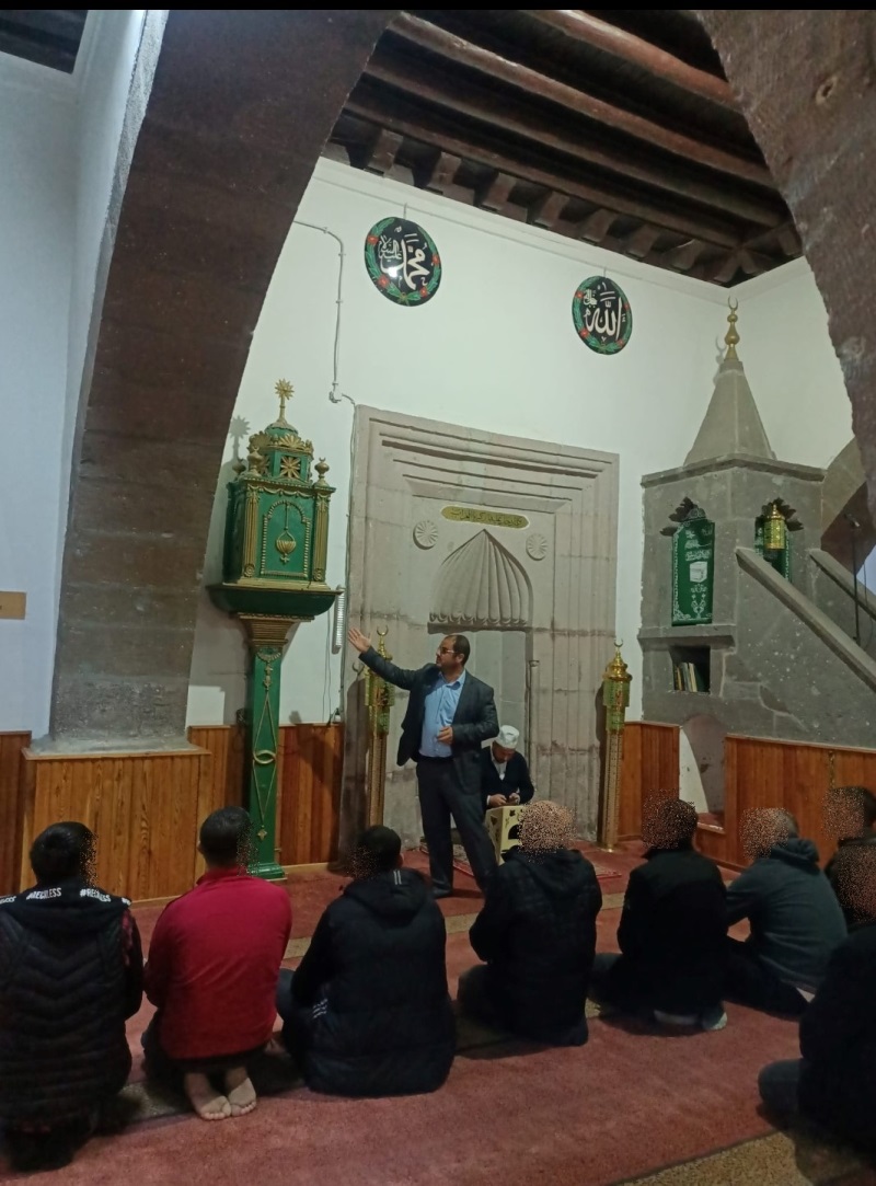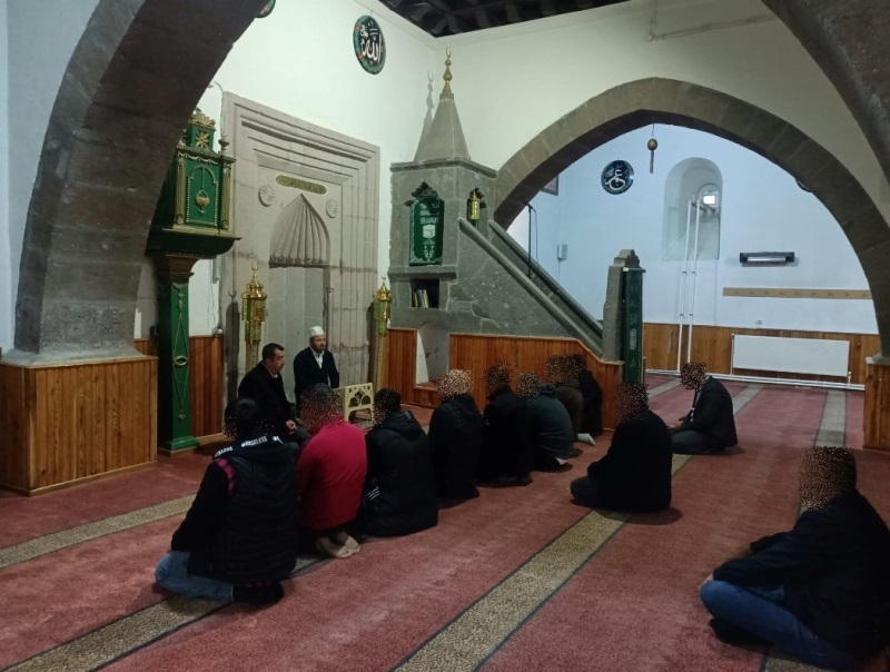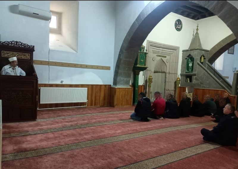 Kayseri Açık Ceza İnfaz Kurumu hükümlüleri, Adalet Bakanlığı ile Diyanet İşleri Başkanlığı arasında imzalanan iş birliği protokolü çerçevesinde 11 hükümlü, kurum öğretmeni, kurum vaizleri ve kurum personelinin katılımıyla Bünyan İlçe müftülüğüne ve Tarihi Camii Kebir/Ulu Camii’ne ziyarette bulunuldu. Ziyarette ilçe müftü vekili Uzman Vaiz Muharrem ÇAM tarafından misafir edilen hükümlülere camilerin din ile toplumsal hayattaki önemi ve Diyanet İşleri Başkanlığımızın ile ilçe müftülüğünün yürüttüğü din hizmetleri hakkında yapılan genel bilgilendirme sonrası öğlen namazının ardından ilçe müftülüğü tarafından hükümlülere çeşitli hediyeler takdim edildi.